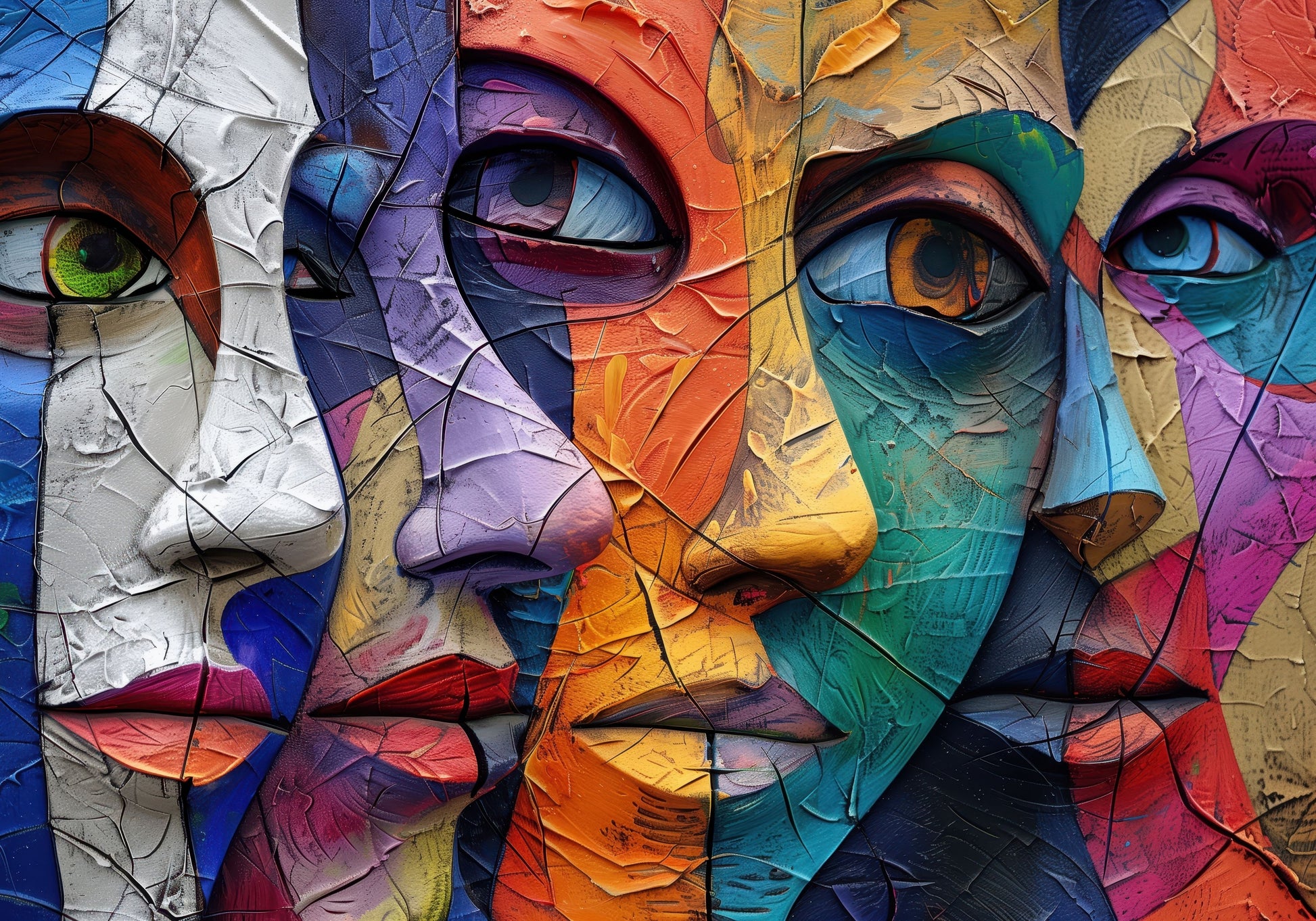 Un tablou vibrant, plin de culoare și expresivitate, care surprinde diversitatea emoțiilor umane. Stilul modern, abstract și texturat transformă fiecare chip într-o poveste aparte. Este o alegere ideală pentru cei care iubesc arta contemporană și vor să aducă o explozie de energie și personalitate în casa lor.