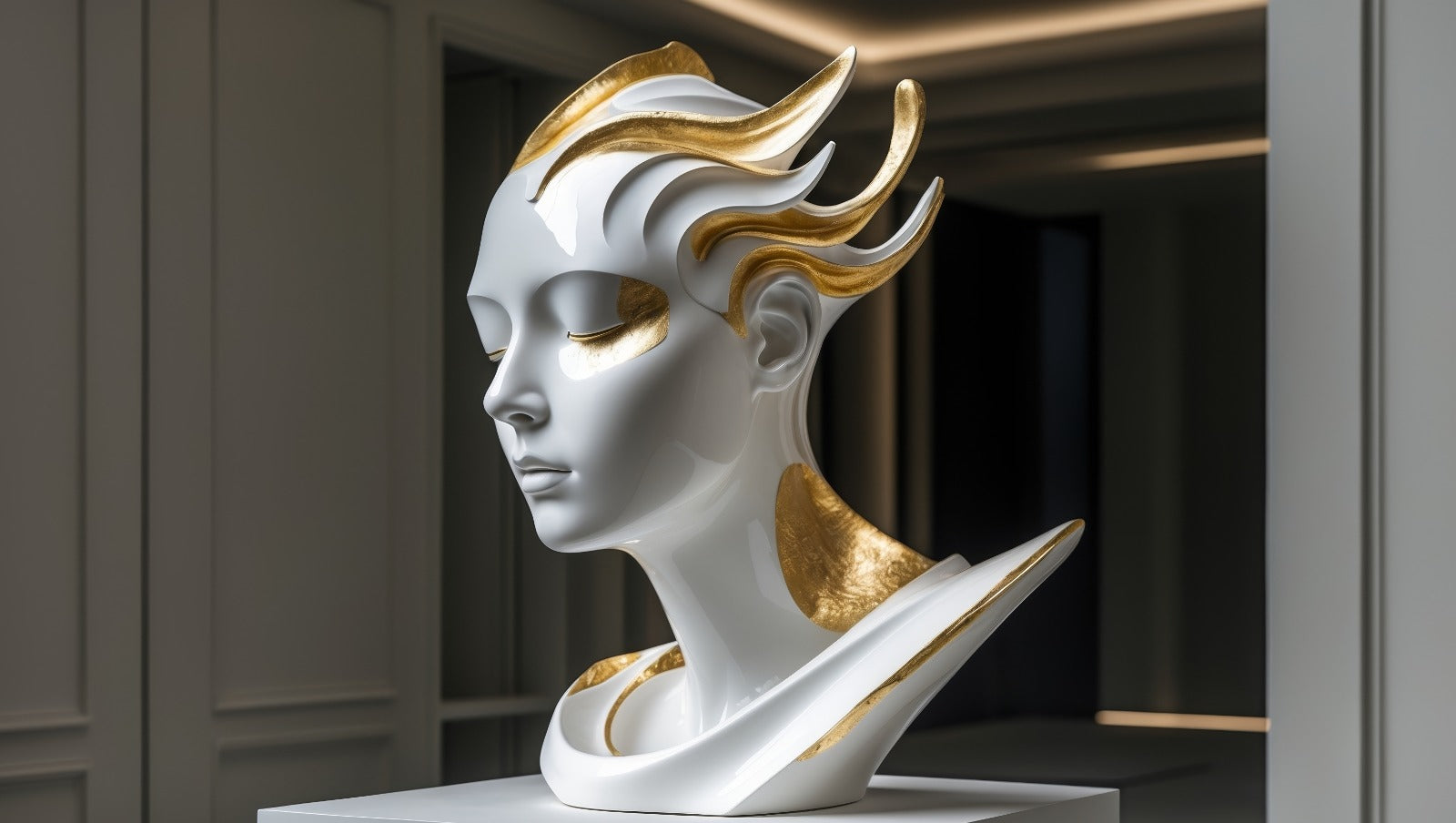 Tabloul „Golden Muse” îmbină minimalismul formelor moderne cu accente aurii care radiază rafinament și mister. Face parte din colecția Divine Abstraction și oferă o notă de lux subtil și contemporan oricărui interior